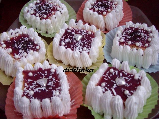 Между блатовете се намазва със сметана.Половината нарязох на малки пастички а другата половина на 2 малки квадратни тортички.